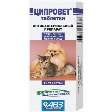Ciprovet (ciprofloxacin) for cats, puppies and small breeds of dogs 10 tablets
