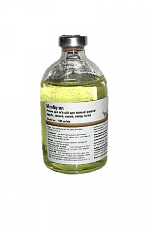 Menbutil is administered to animals deeply intramuscularly or slowly intravenously once a day at a dose of 1 ml per 10 kg of animal weight (10 mg of active ingredient per 1 kg of animal weight), no more than 5 days.