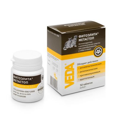 Fitoelita® Metastop is used for cats and dogs as an antimetastatic, antitoxic, antitumor and adaptogenic agent in the preoperative and postoperative periods, as well as for the purpose of detoxifying the body in case of neoplasms.