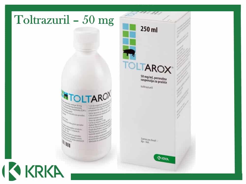Toltarox contains the active substance toltrazuril, derived from the group of triazintrion, with a broad spectrum of action, which is active against Eimeria: Isospora suis, Eimeria arloingi, E. scarab, E. guevarai, E. bovis zuernii, E. alabamensis and other eimeria species of cattle and pigs at the stages of their intracellular development.
