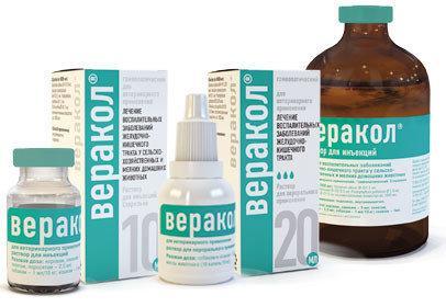 Veracol injection solution. Subcutaneously or intramuscularly. A single dose of the drug per animal is: